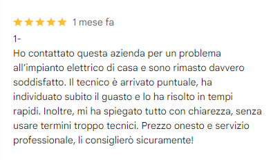 I nostri tecnici esperti non solo risolveranno il problema specifico, ma ti forniranno anche consulenza approfondita e soluzioni su misura per ottimizzare la sicurezza e l'efficienza del tuo impianto elettrico. Questo include consigli pratici sulla manutenzione preventiva, suggerimenti per l'aggiornamento tecnologico e l'identificazione di potenziali rischi nascosti.